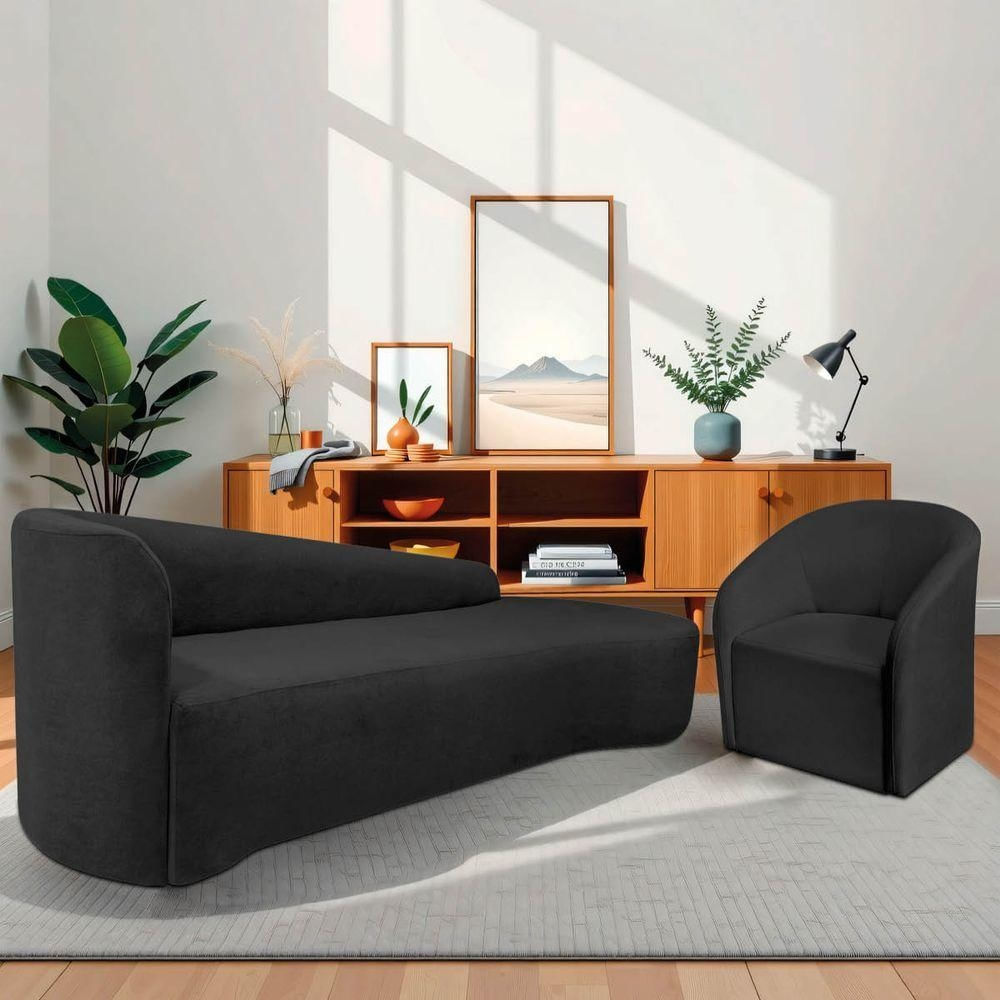 Kit Sofá Curvo França 200cm Ld. E Poltrona Luiza Max Conforto, Elegância E Design Moderno Linho Preto