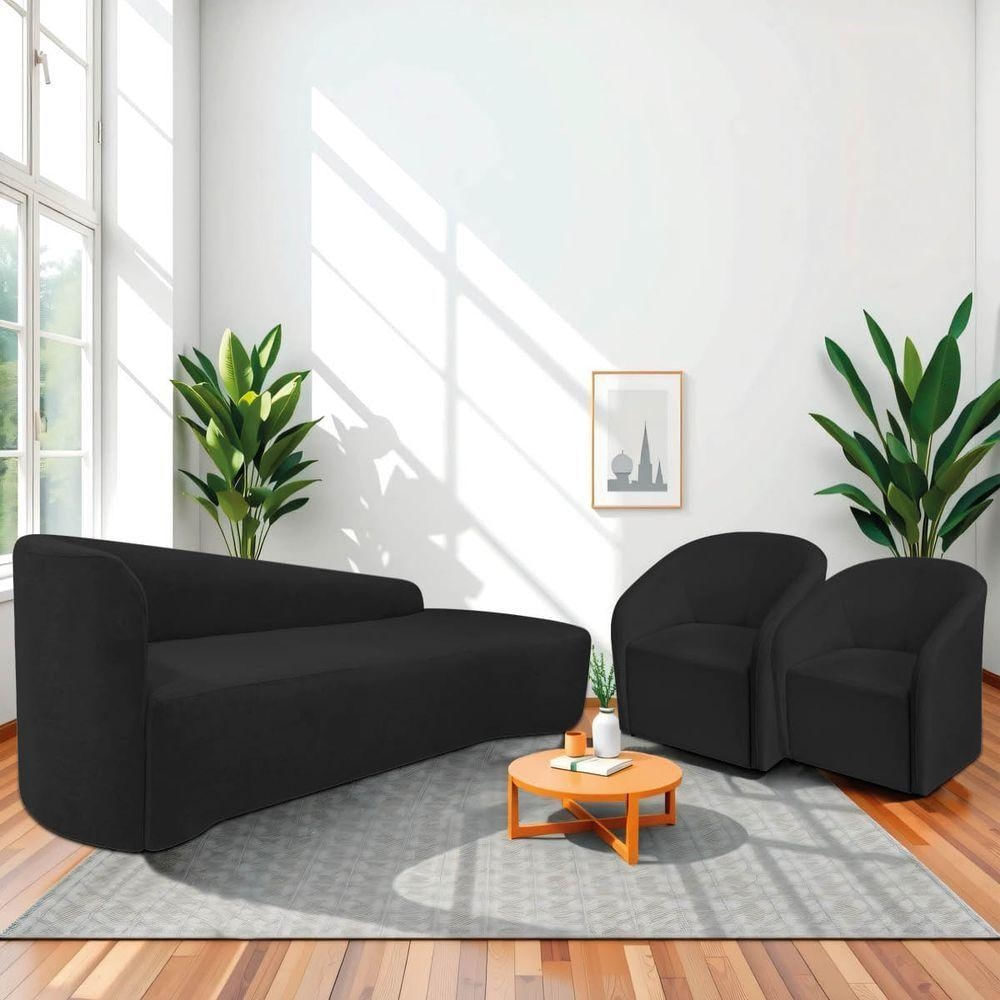 Kit Sofá Curvo França 250cm Ld. E 2 Poltronas Luiza Max Conforto, Elegância E Design Moderno Bouclé Preto