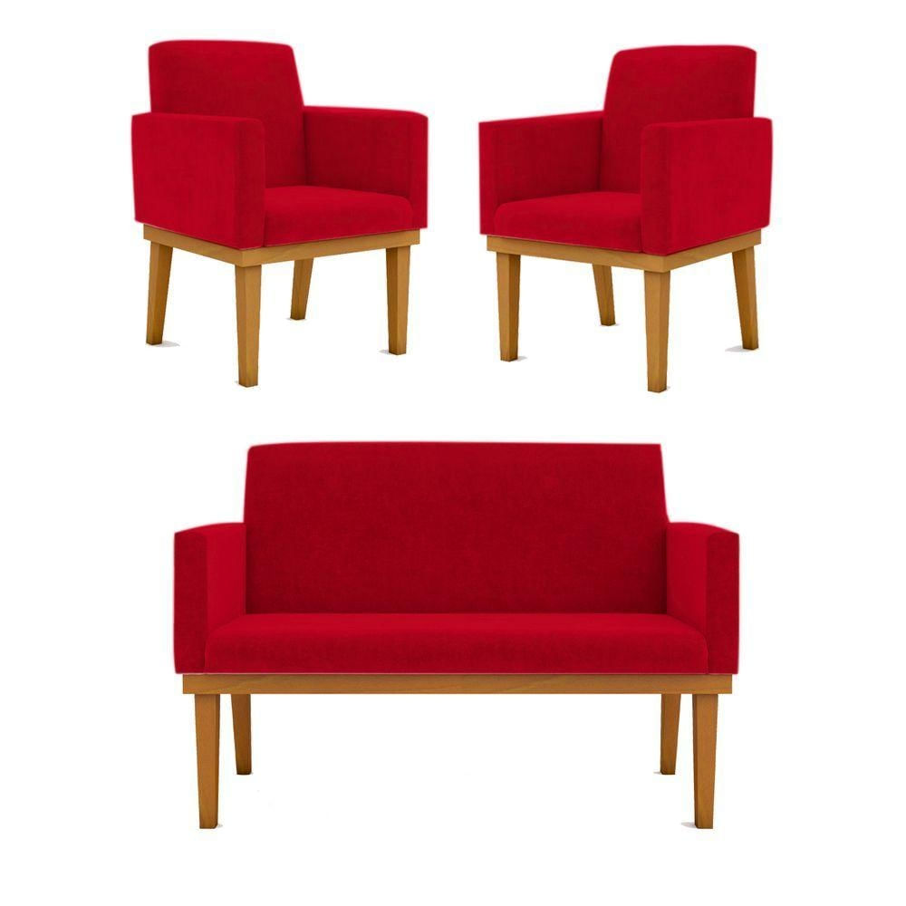 Kit Sofá Namoradeira + Poltrona Reforçada Sala De Estar Cor:vermelha