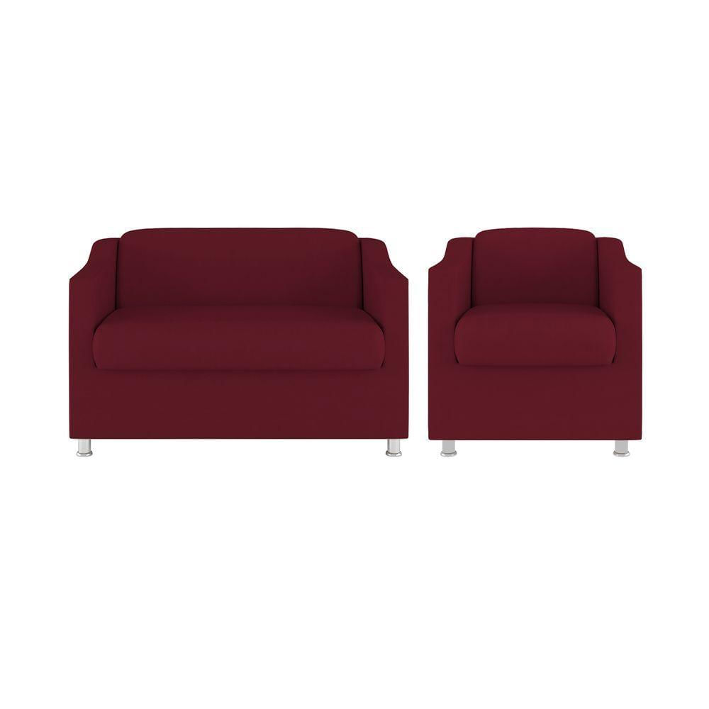 Kit Sofá Namoradeira + Poltrona Tilla Recepção Sala Tecido Cor:marsala