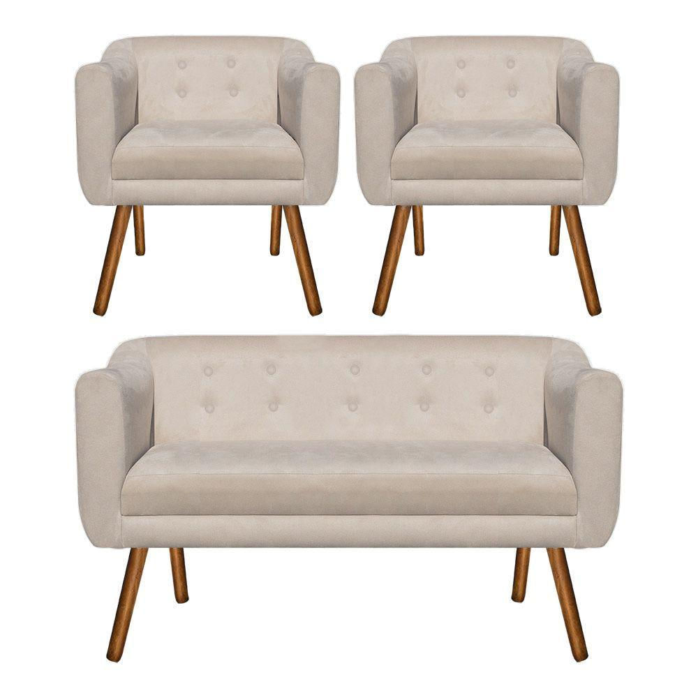 Kit Sofá Retrô Namoradeira 2 Lugares e 02 Poltronas Julia Suede Bege Drossi