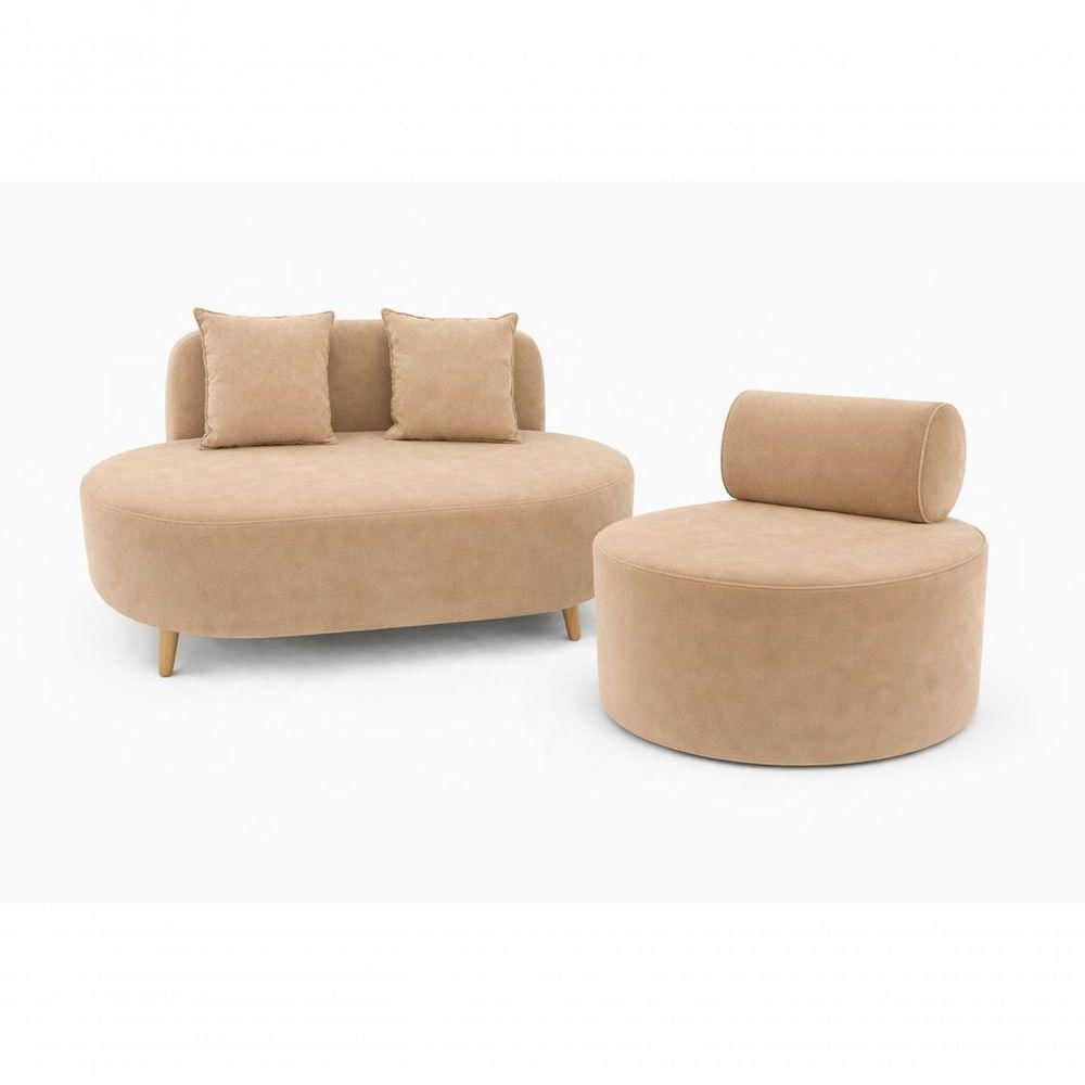 Kit Sofá Orgânico Feijão Para Sala Quarto 115 Cm 02 Almofadas E Poltrona Orgânica Decorativa Flora Suede Bege Do Lar