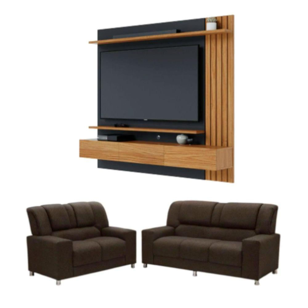 Kit Sofás Sandero Com Painel Home Juriti Colibri Marrom/preto Fosco/noce Milano