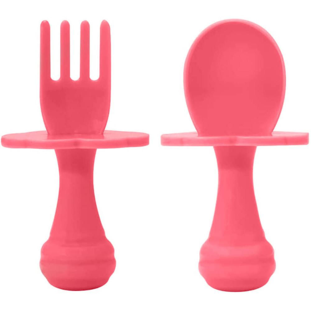 Kit Talheres de Treinamento Buba Colher e Garfo para Bebê com Escudo Limitador Rosa