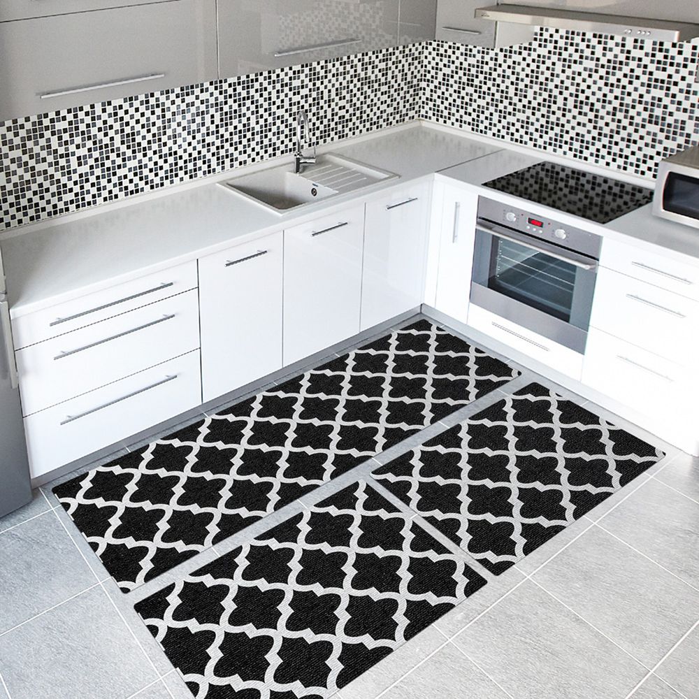Kit Tapete de Cozinha Jacquard com Látex 03 Peças 75% Algodão 25% Poliéster - Arabesco Preto