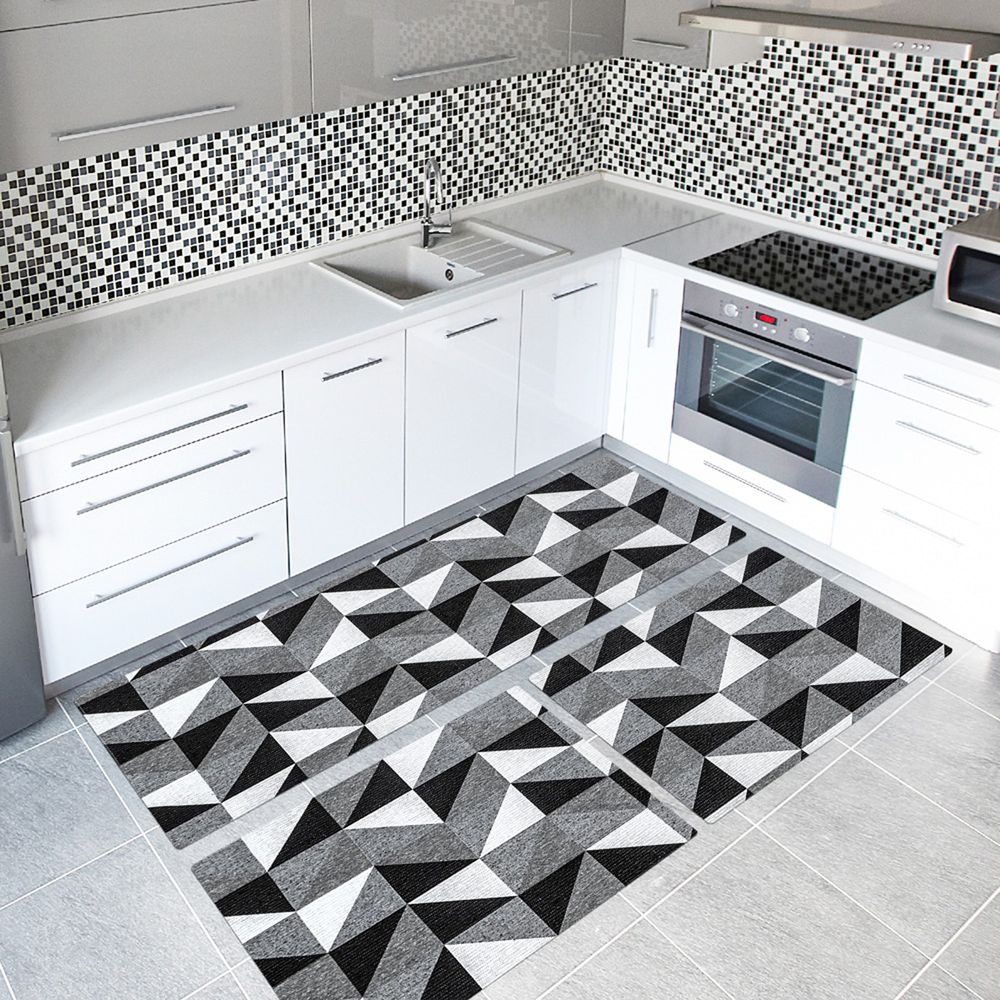 Kit Tapete de Cozinha Jacquard com Látex 03 Peças 75% Algodão 25% Poliéster - Dallas Preto