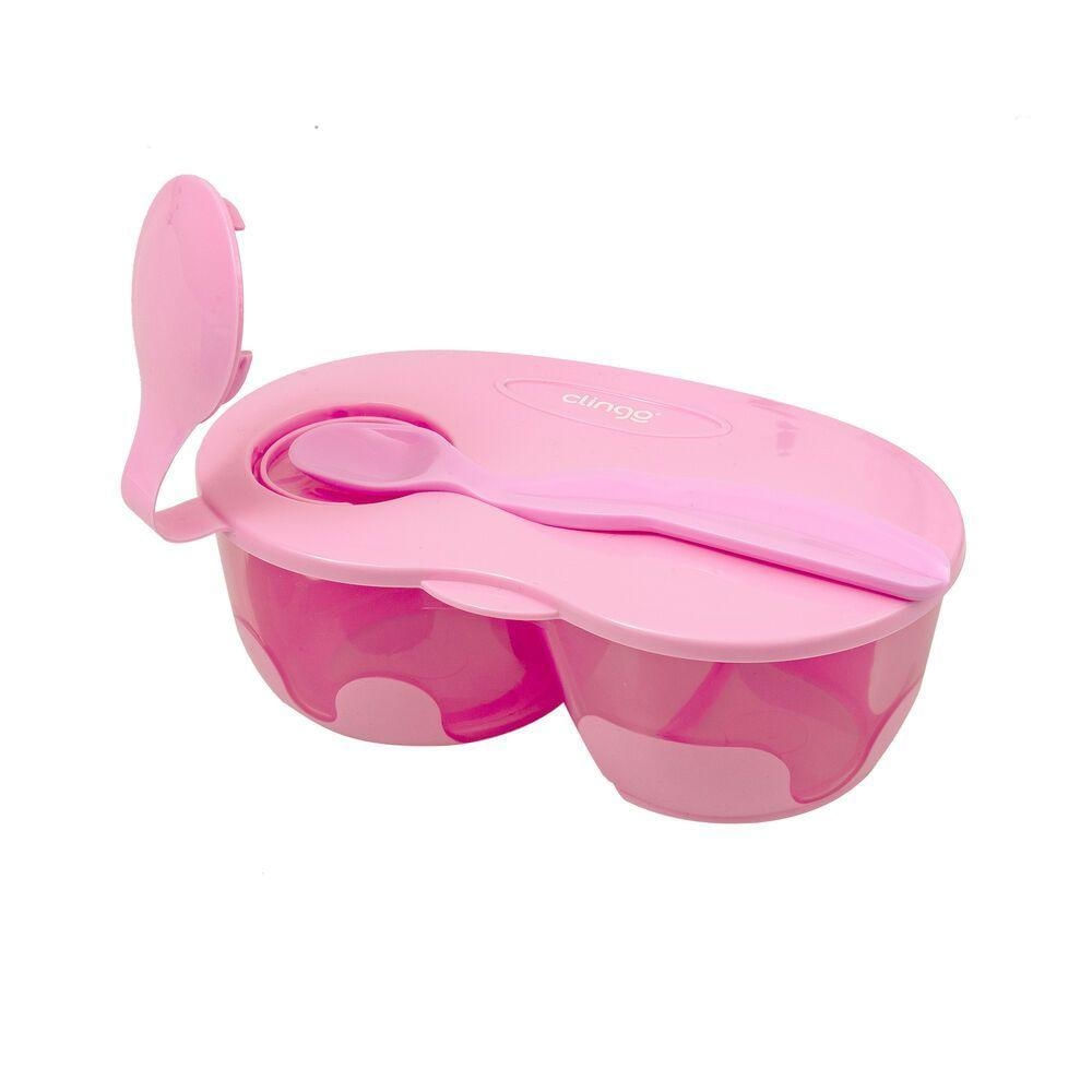 Kit Tigela Com Colher E Divisória Clingo Rosa Com Compartimento Para Talher