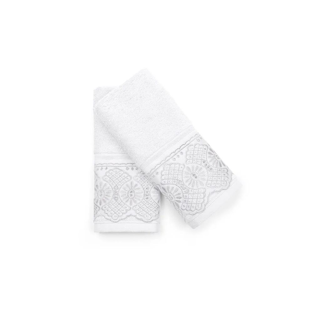 Kit Toalha Lavabo 2 Peças com Renda Roma Bouton Branco