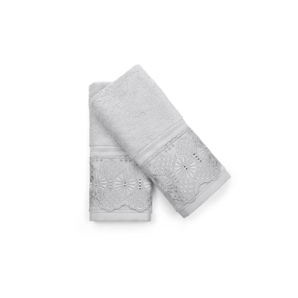 Kit Toalha Lavabo 2 Peças com Renda Roma Bouton Prata