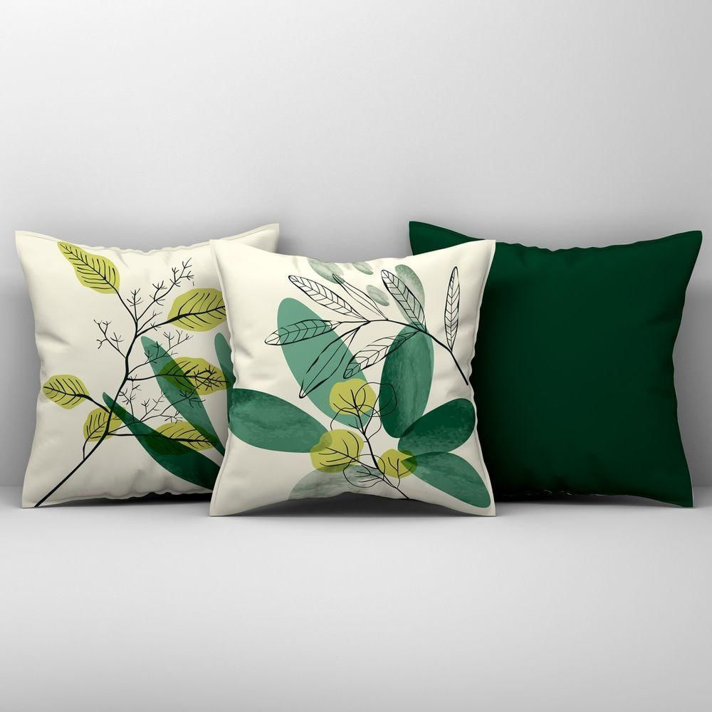 Kit Trio Capas De Almofadas Estampadas Em Veludo Suede 45cm X 45cm - Decoração Luxo Para Sala Cor Verde