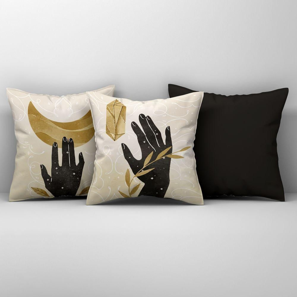 Kit Trio Capas De Almofadas Estampadas Folhas Em Veludo Suede 45cm X 45cm - Decoração Luxo Para Sala Cor Preto