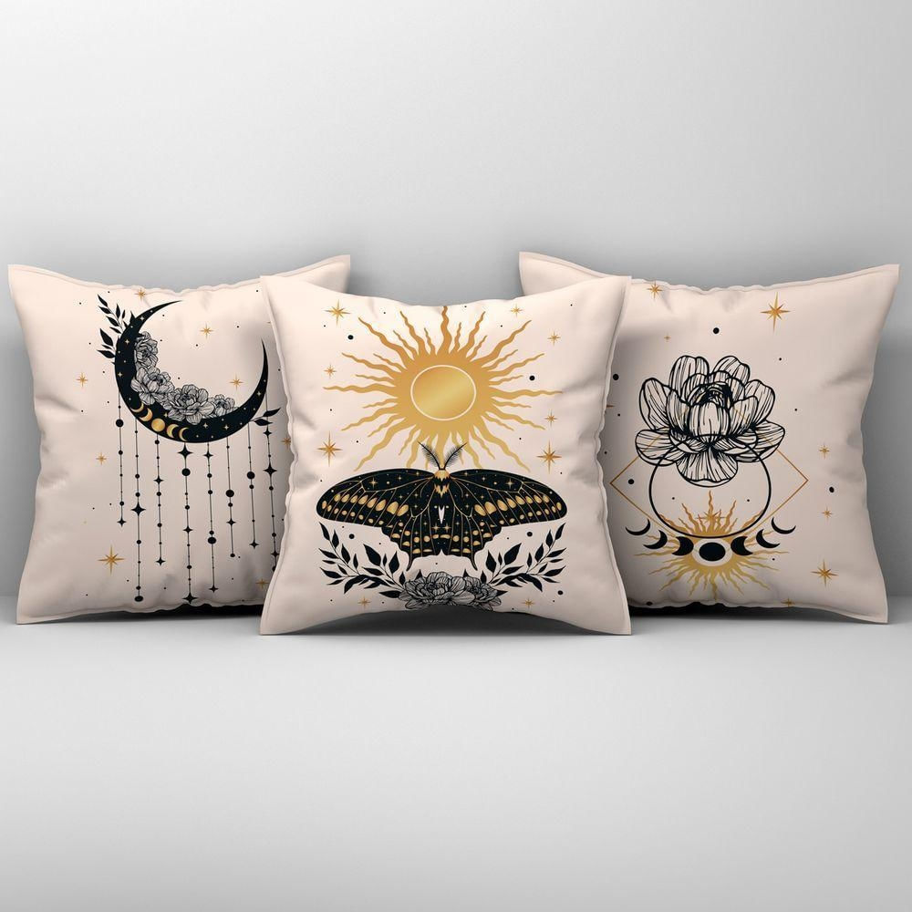 Kit Trio De Almofadas Cheias Fases Da Lua Estampadas Em Veludo Suede 45cm X 45cm Enchimento Em Refil Silicone Cor Bege
