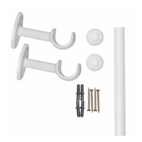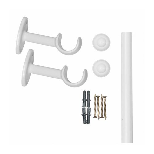 Kit Varão Bella Arte Pratiko Basic 19mmx1,50m com 2 Suportes em Madeira Branco