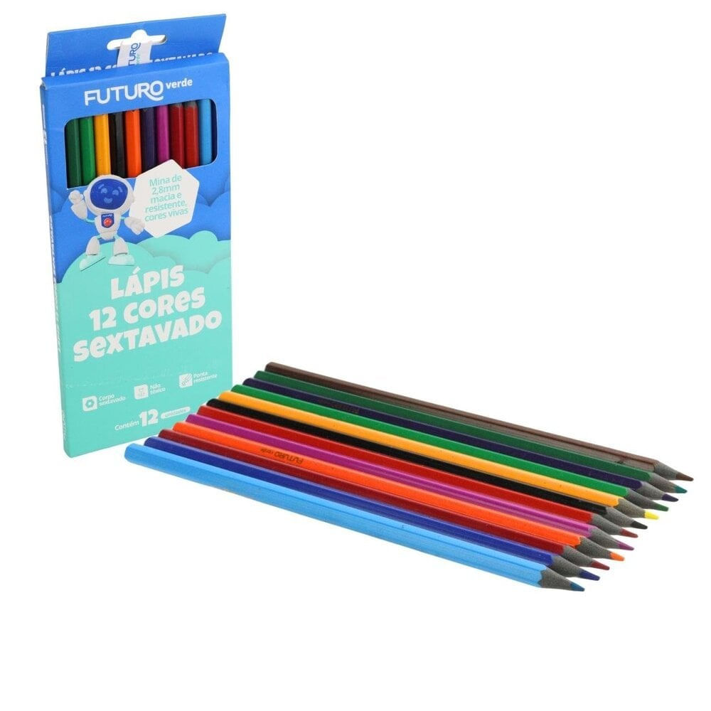 LÁPIS DE PINTAR COM 12 CORES SEXTAVADO +3 ANOS FUTURO ESCOLAR A