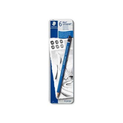 O Lápis Grafite Técnico Staedtler Lumograph com 6 Graduações 8B a HB é ideal para o uso artístico e profissional garantindo assim toda qualidade ao seu trabalho. O estojo metálico conta com 6 graduações, 8B, 7B, 6B, 4B, 2B, HB, além de minas ainda mais escuras, especial para desenhos, retratos, esboços expressivos e sketches, com alta resistência contra quebra. O lápis grafite conta com corpo hexagonal e formulação especial para resultados com brilho metálico em uma ampla variedade de tons de cinza.