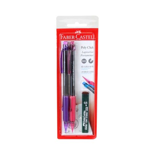 | Mais Informações | Produto contém: Lapiseira Faber-Castell Poly Click 0.5mm Cores Sortidas. Ponta: 0.5mm. Grip emborrachado: maior conforto na hora da escrita. Cores super divertidas. Acionamento lateral da mina grafite. Borracha colorida no topo Cores sortidas. |