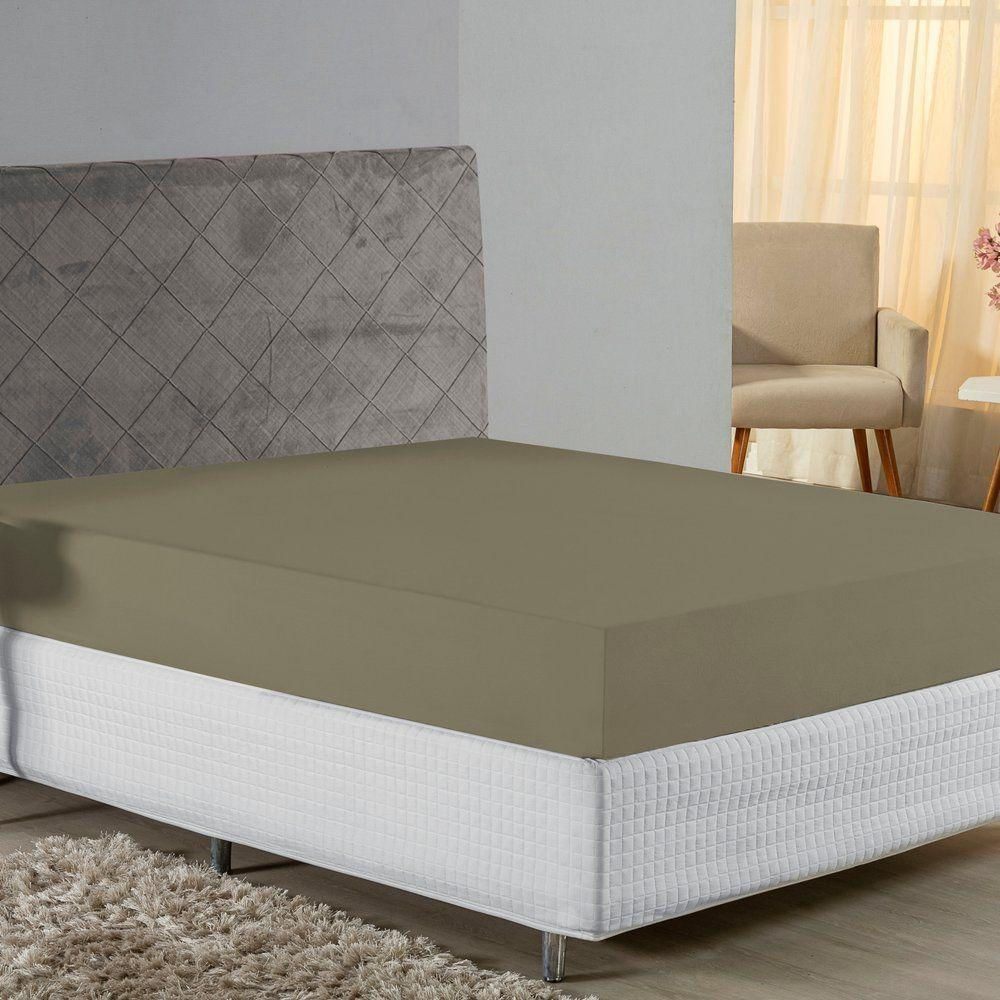 Lençol Com Elástico Casal Nobre 1 Peça 30cm De Altura Malha 100% Algodão - Avelã