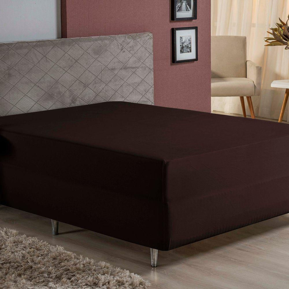 Lençol Com Elástico Casal Nobre 1 Peça Luva De Box 55cm De Altura Malha 100% Algodão - Marrom