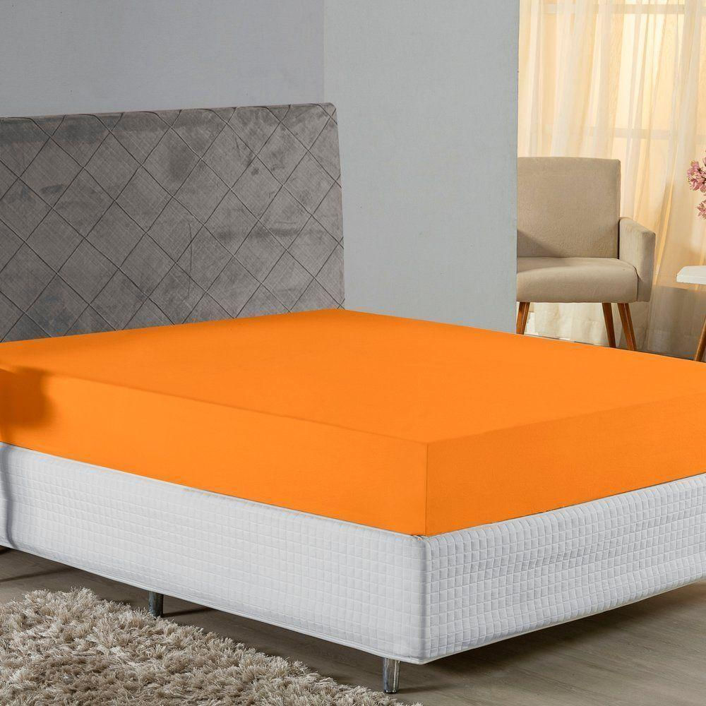 Lençol Com Elástico Casal Nobre Viúva 1 Peça 30cm De Altura Malha 100% Algodão - Laranja