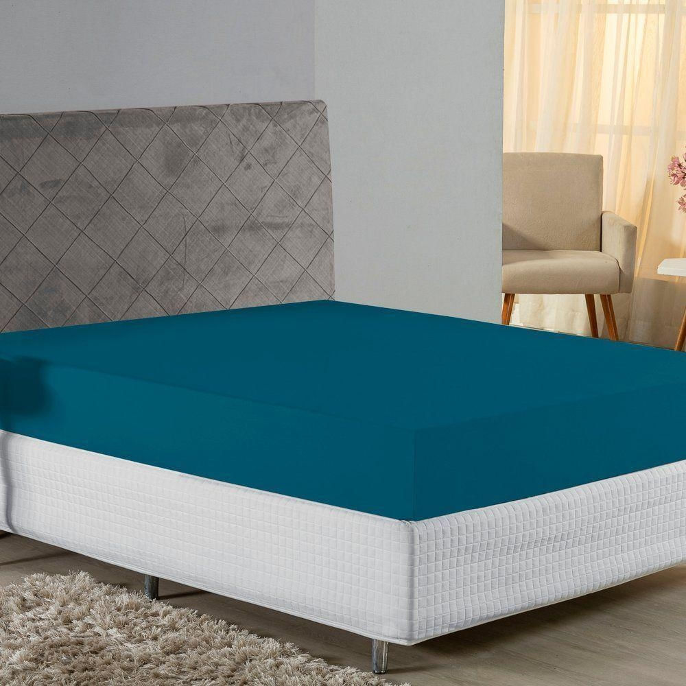 Lençol Com Elástico King Nobre 1 Peça 30cm De Altura Malha 100% Algodão - Petróleo