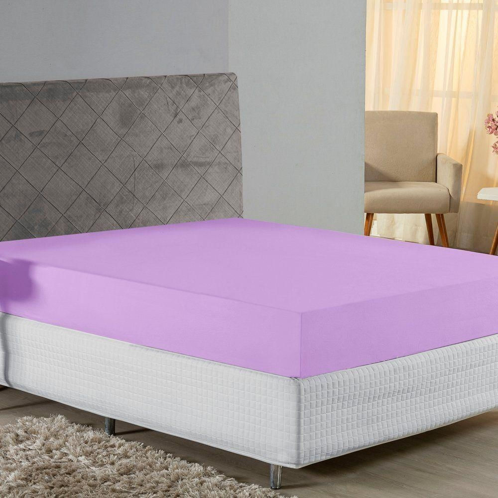Lençol Com Elástico Queen Nobre 1 Peça 30cm De Altura Malha 100% Algodão - Lilás