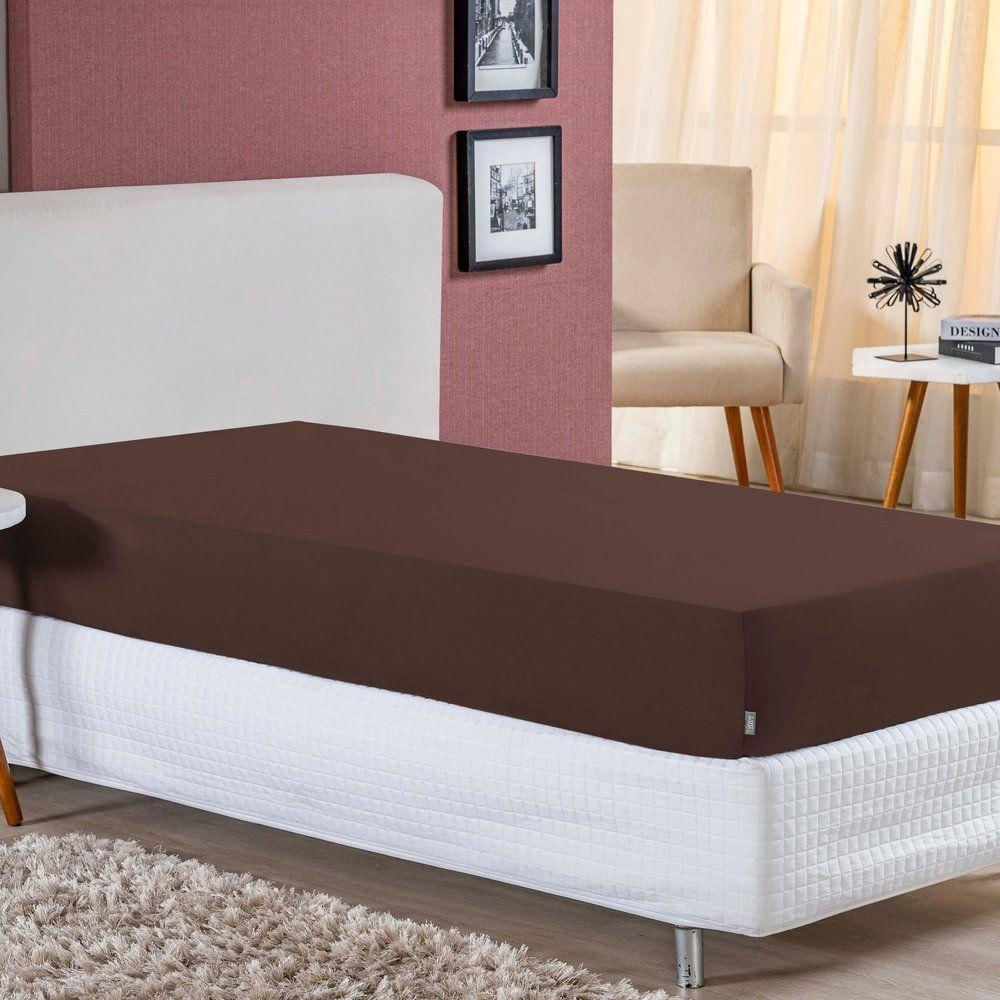 Lençol Com Elástico Solteirão Nobre 1 Peça 30cm De Altura Malha 100% Algodão - Marrom