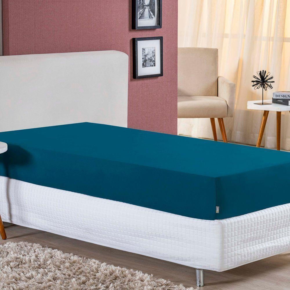 Lençol Com Elástico Solteirão Nobre 1 Peça 30cm De Altura Malha 100% Algodão - Petróleo