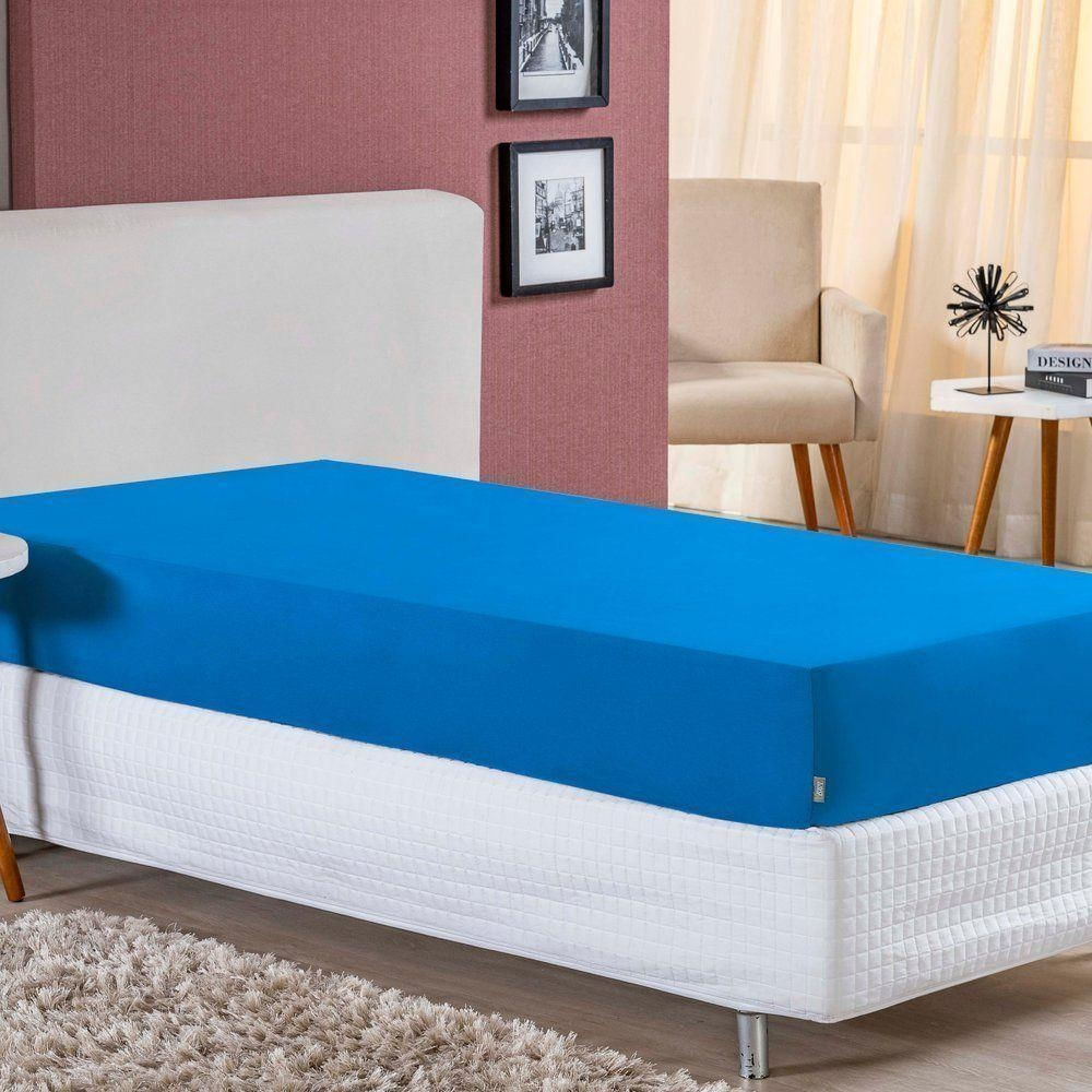 Lençol Com Elástico Solteirão Nobre 1 Peça 30cm De Altura Malha 100% Algodão - Turquesa