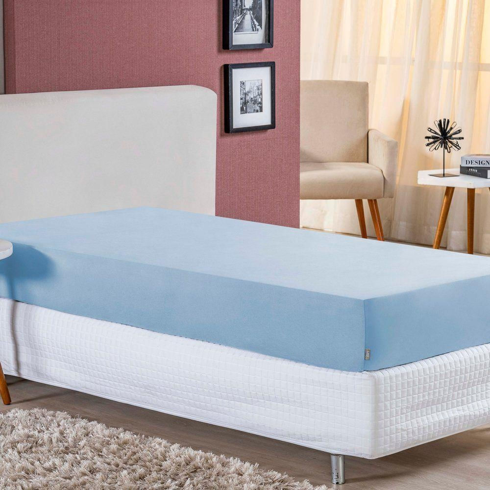 Lençol Com Elástico Solteiro Nobre 1 Peça 30cm De Altura Malha 100% Algodão - Azul-bebê