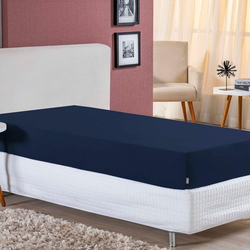 Lençol Com Elástico Solteiro Nobre 1 Peça 30cm De Altura Malha 100% Algodão - Azul-marinho