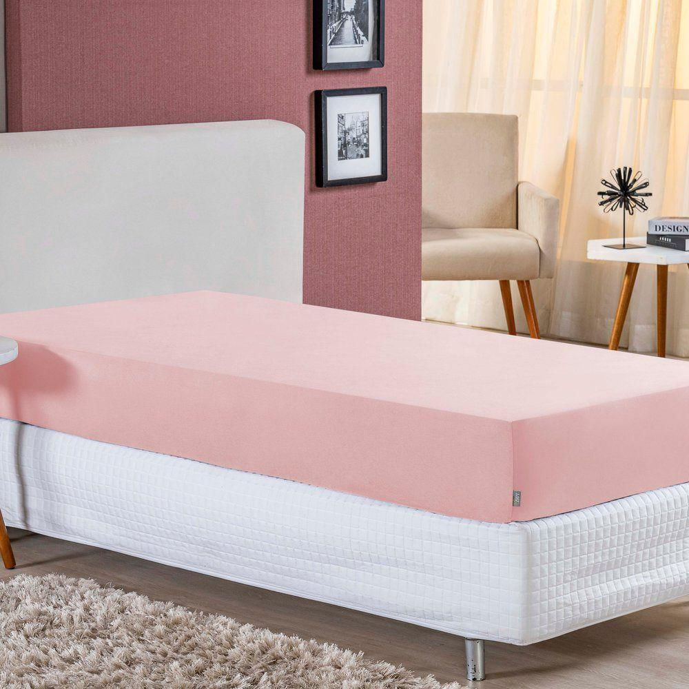Lençol Com Elástico Solteiro Nobre 1 Peça 30cm De Altura Malha 100% Algodão - Rosa
