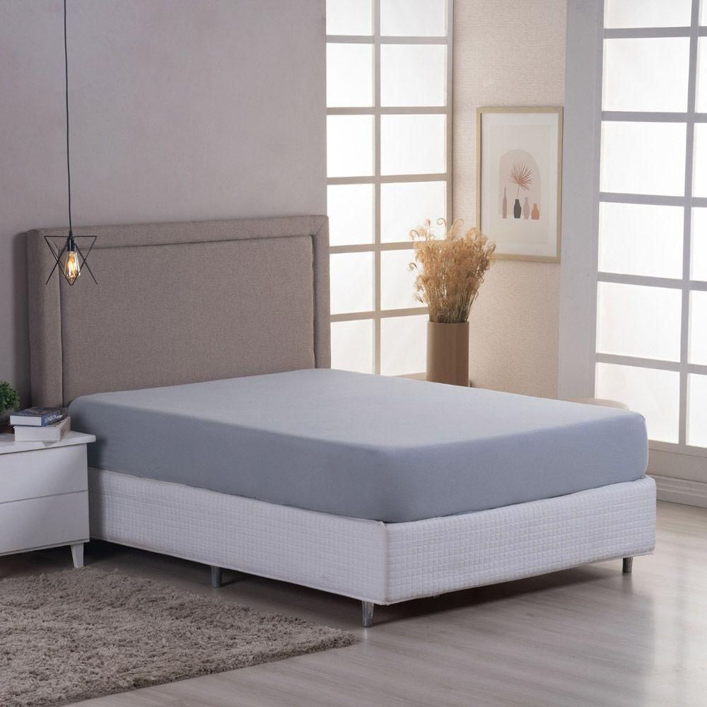 Lençol De Baixo Minimal Queen Avulso Com Elástico 01 Peça Malha 100% Algodão - Cinza