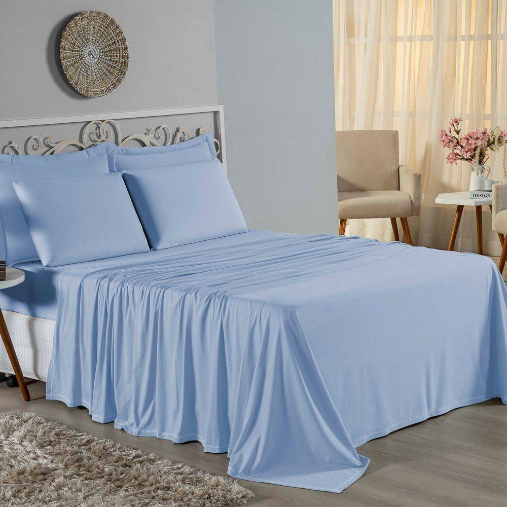 Lençol De Cima Solteiro Nobre 1 Peça 1,60m X 2,40m Malha 100% Algodão - Azul-bebê