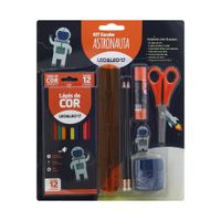 Kit Escolar Leo&Leo Astronauta 12 Lápis de Cores, Lápis, Borracha, Apontador, Cola, Régua e Tesoura
