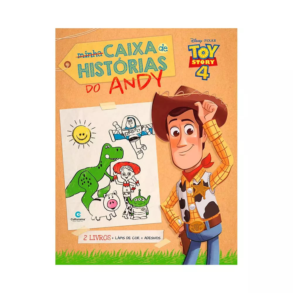 Livro Infantil Culturama Minha Caixa de Histórias Toy Story 4 com 2 Livros, Lápis de Cor e Adesivos