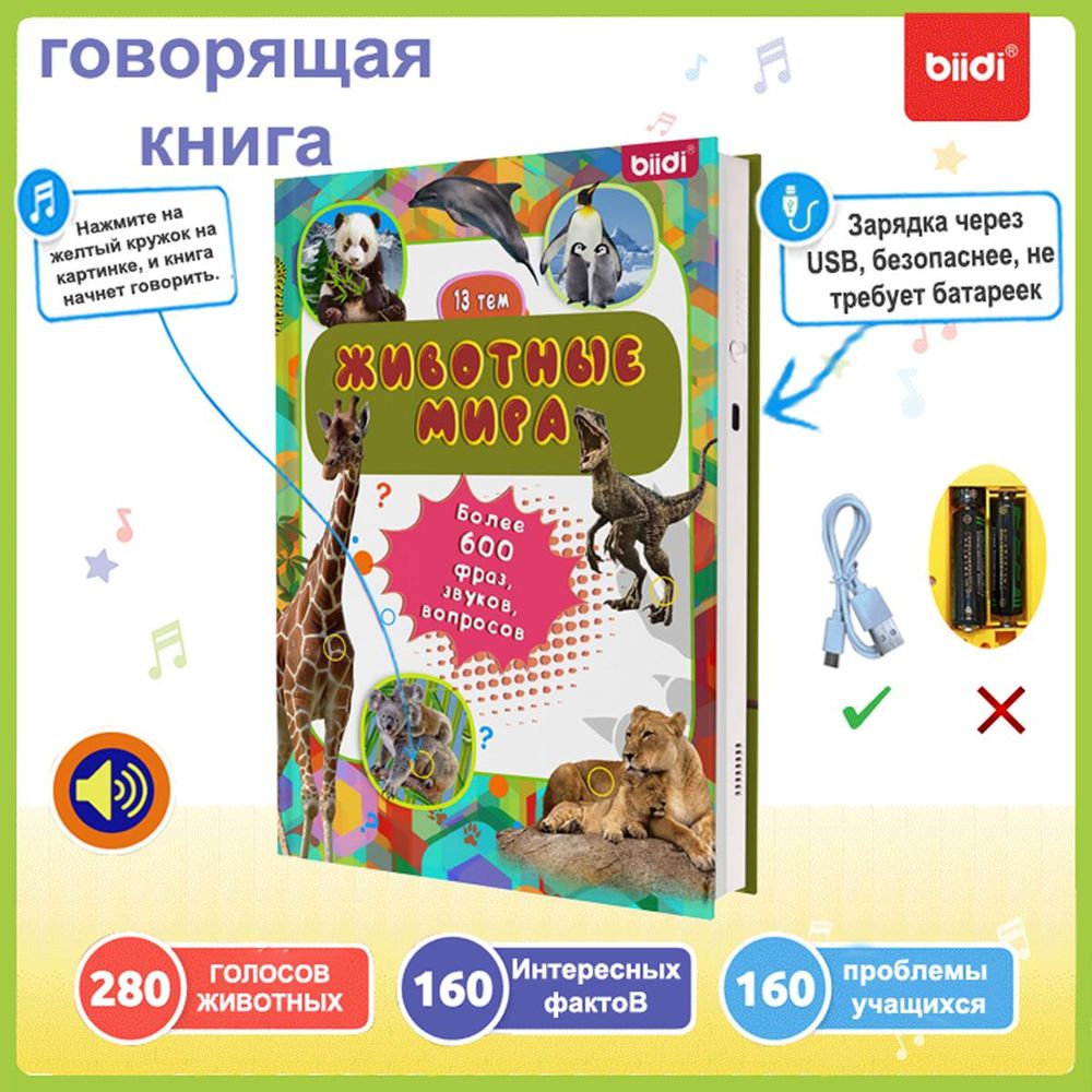 Livros infantis Montessori com sons, livro em russo, 600 vozes, 13 tipos de animais