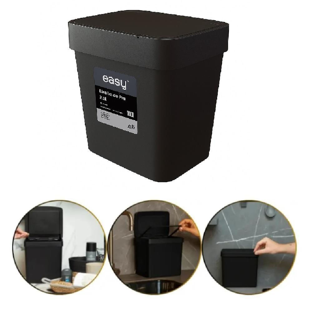 Lixeira Pia Cozinha Preta Cesto De Lixo 2,5l Tampa Multiuso Casa Bancada Consultorio Compacta Ecologica