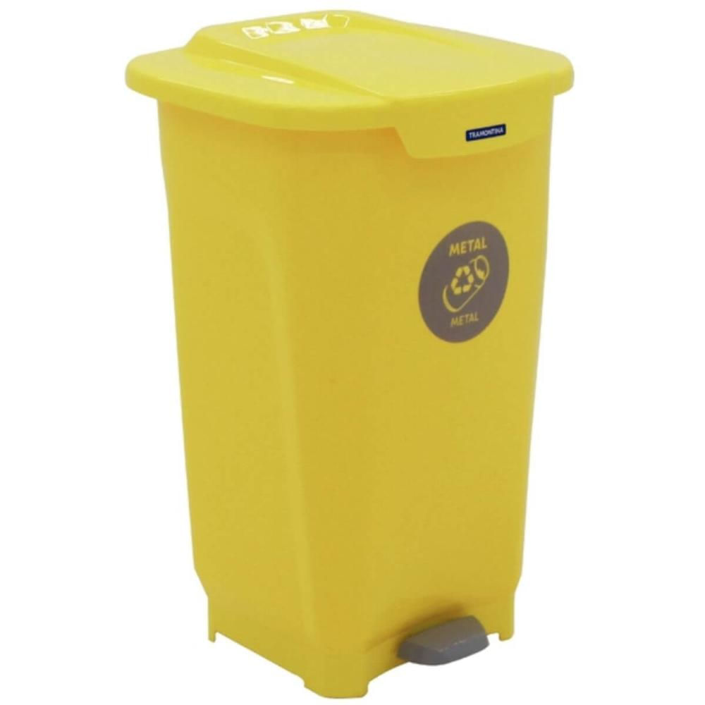 Lixeira Plástica Amarela Tramontina T-Force Coleta Seletiva Metal 50L Empresas Escolas