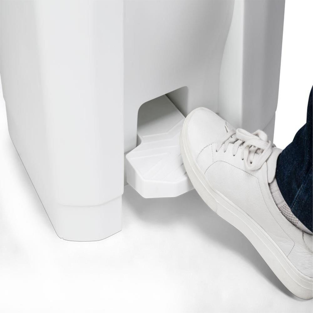 - Acionamento por pedal, permitindo abertura sem contato manual, garantindo mais higiene e conforto.