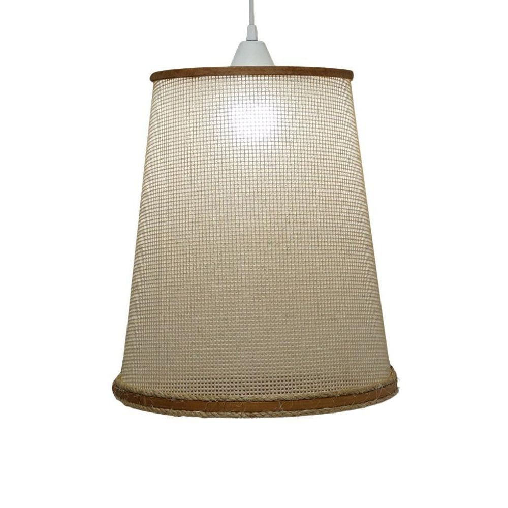 Lustre pendente produzido artesanalmente em madeira, palha e sisal. Cúpula com 40 cm de altura, 35 cm de diâmetro inferior e 25 cm de diâmetro superior. Acompanha canopla de teto e fio com 1,50 m na cor branca. As luminárias em palha artesanal permitem criar diferentes formas de iluminar e decorar os ambientes. A incidência de luminosidade nos espaços variam de acordo com o formato e com as lâmpadas escolhidas e criam efeitos de luz surpreendentes. Bivolt.