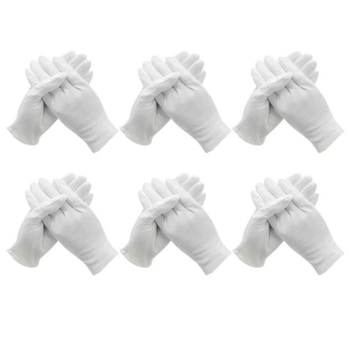 Luvas de Algodão Brancas Secas - Pacote com 6 Pares