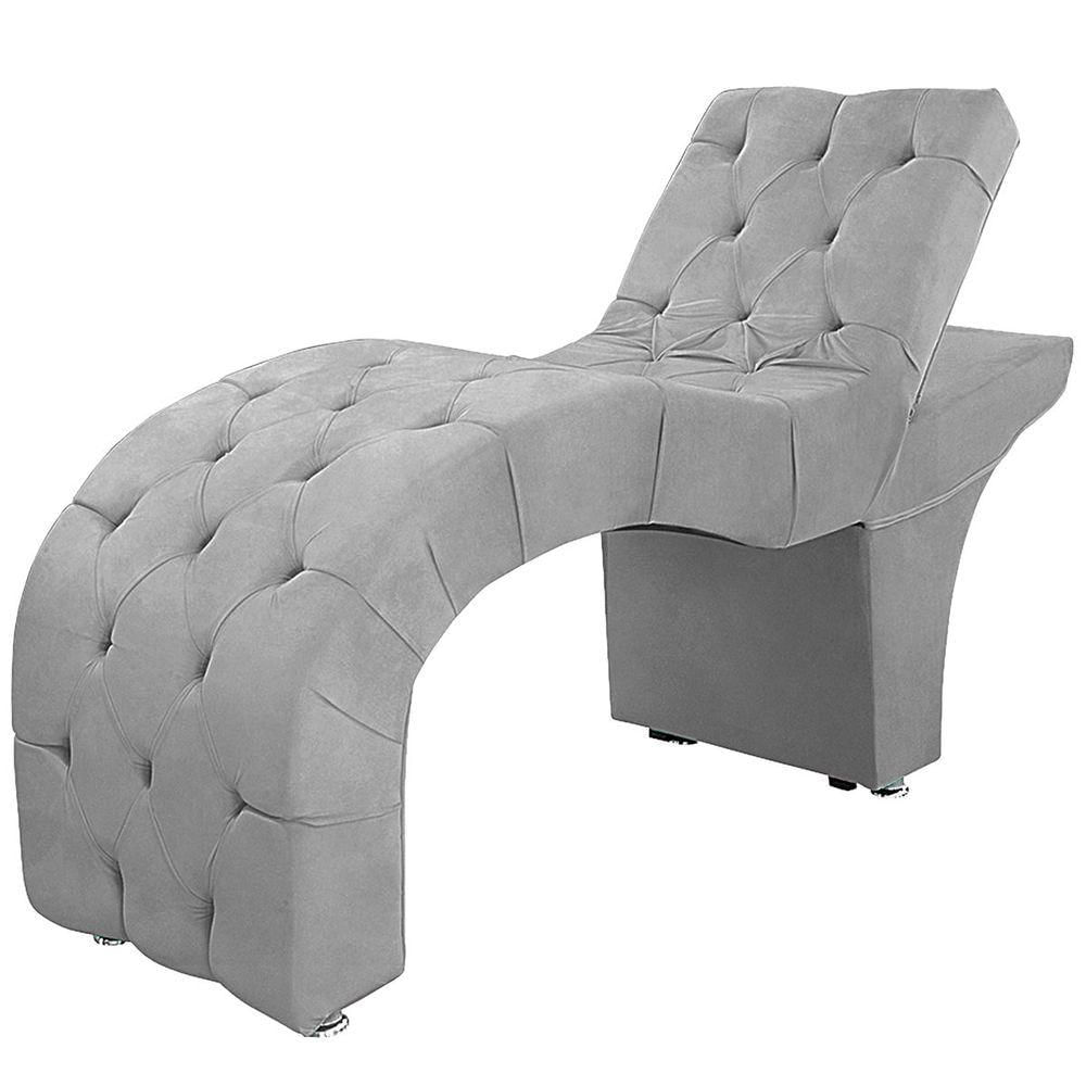 Maca Estofada Capitone Reclinável Julia Para Estetica Facial Sombrancelha E Cílios Suede Cor Cinza Claro