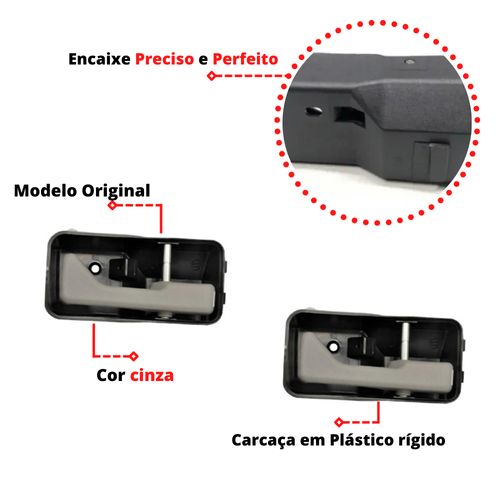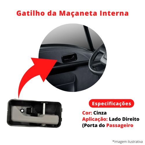 CONTEÚDO DA EMBALAGEM 01 Maçaneta Interna Gatilho Puxador Alavanca – Cor Cinza Porta Dianteira - Lado Direito -