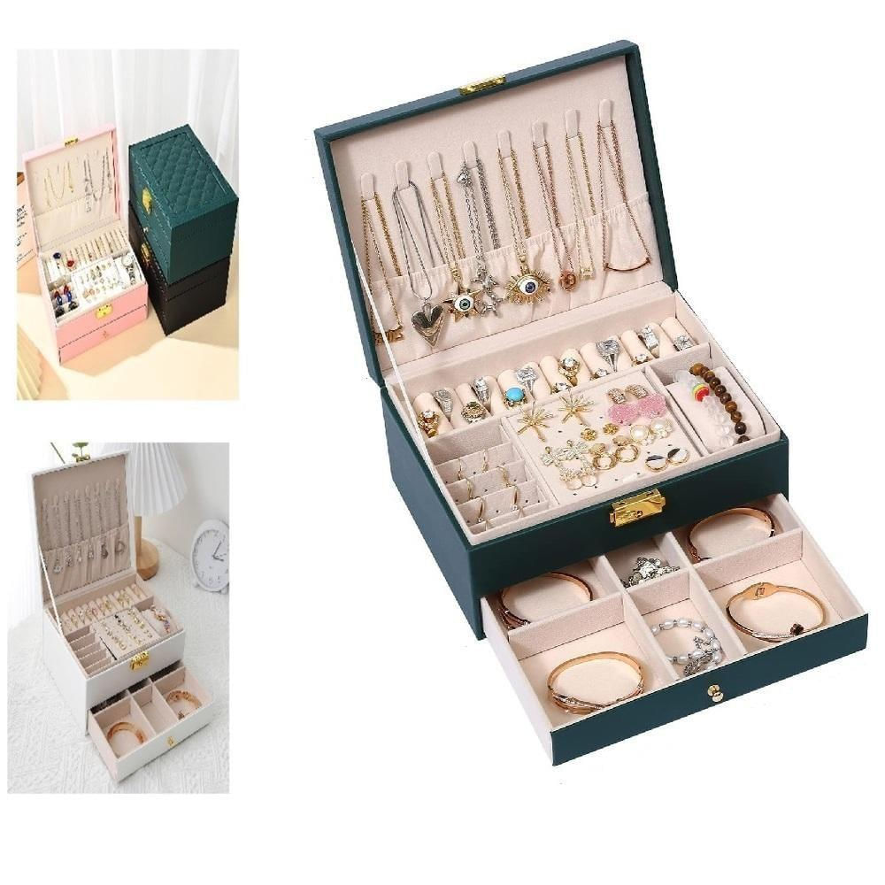 Grande Capacidade: Com duas camadas de armazenamento, esta maleta pode armazenar uma grande variedade de joias, incluindo colares, brincos, anéis, pulseiras e muito mais.