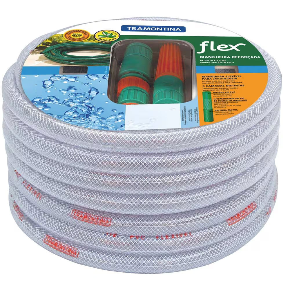 Mangueira Flex de 1/2 Polegada para Jardim com Engates Ráidos e Esguicho 10m Tramontina Gelo