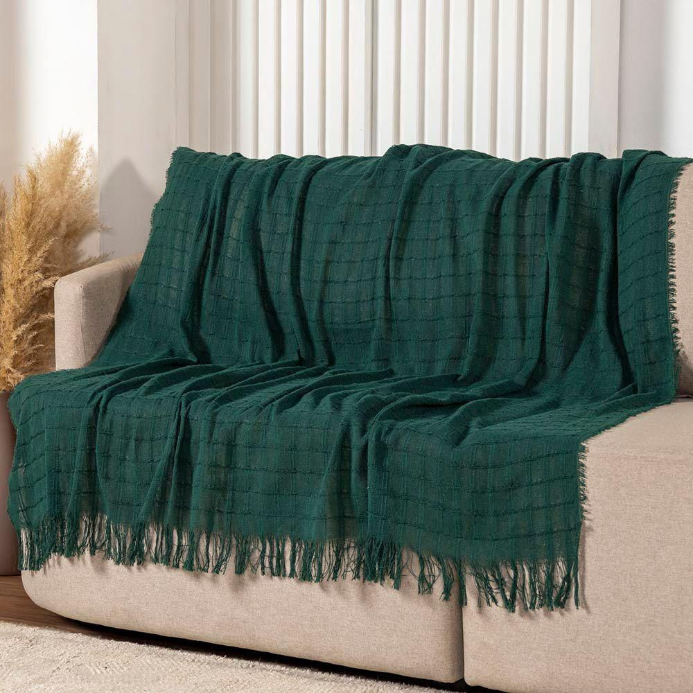 Manta Xale Rubi 1,70m X 1,40m Com Franja Para Sofá Cama 100% Algodão 01 Peça - Verde