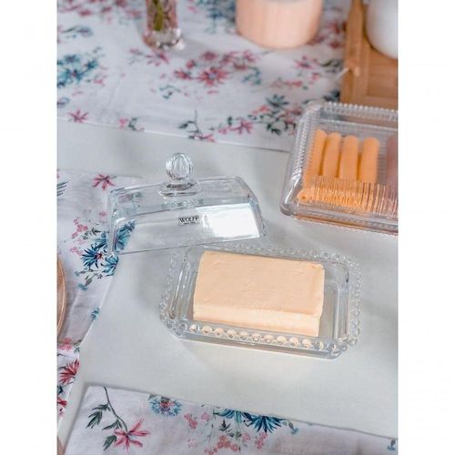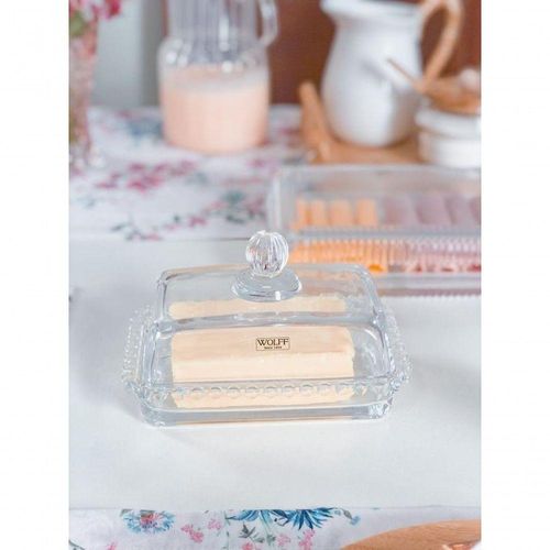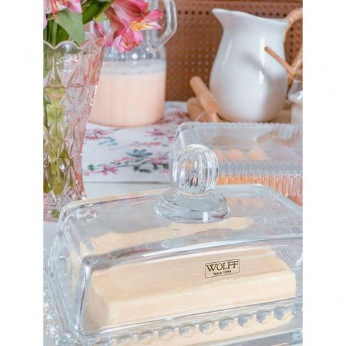 Manteigueira Cristal G 17 Cm X 10,5 Cm X 10 Cm Pearl Bolinha Wolff Transparente