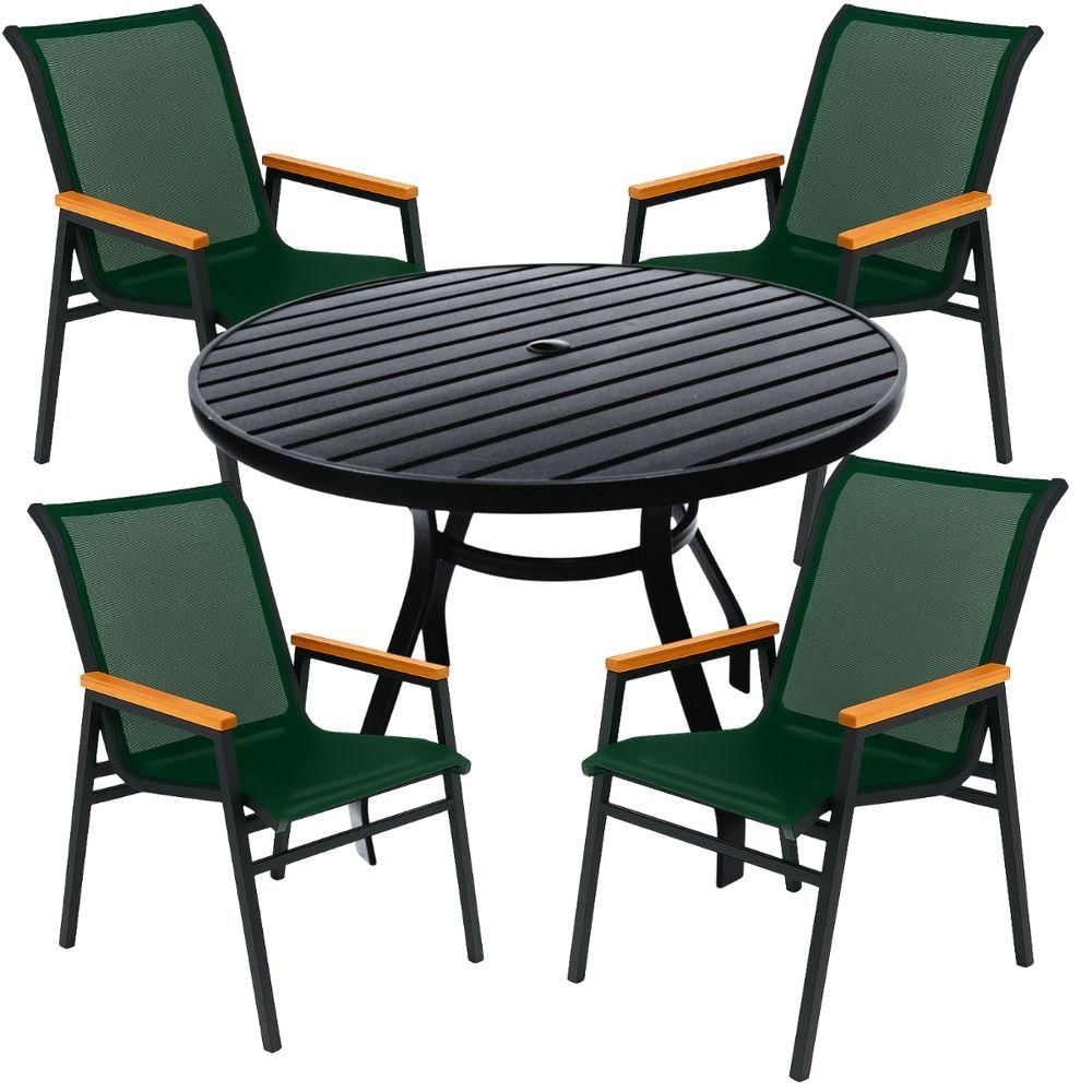 Mesa 1,00m Ripado Alumínio + 4 Cadeiras Praia Tela Sling área Externa Piscina Jardim Verde