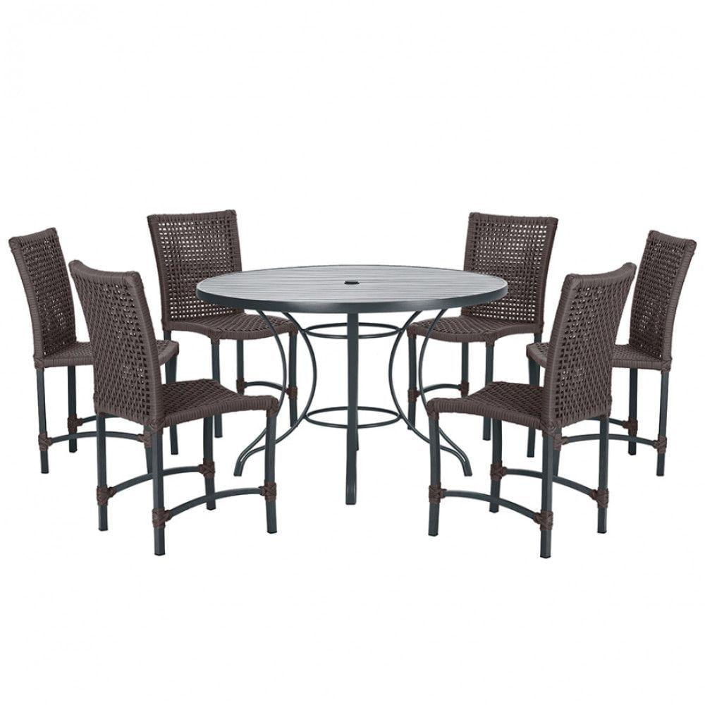 Mesa Ascoli 120 Cm Com 6 Cadeiras Cannes De Alumínio Trama Marrom