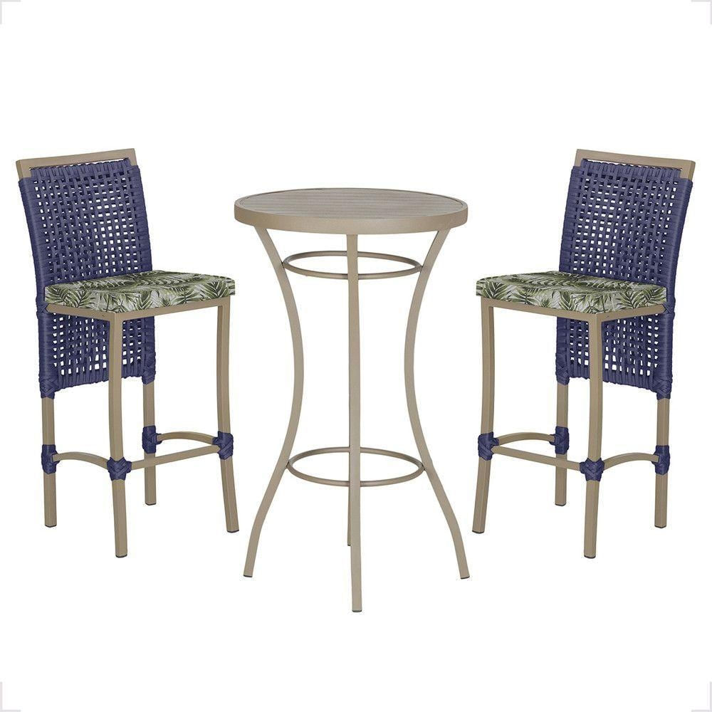 Mesa Bistrô 2 Banquetas Roma Corda Náutica Estofado 5 Trama Azul